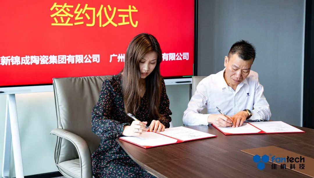 近日,新錦成陶瓷集團(tuán)與佳帆科技在新錦成總部就數(shù)字化智慧物流項(xiàng)目舉行簽約暨啟動(dòng)儀式,新錦成集團(tuán)董事長何成健先生、總裁陳雪妹女士、佳帆科技董事長余俊生先生及項(xiàng)目代表出席此次啟動(dòng)儀式。