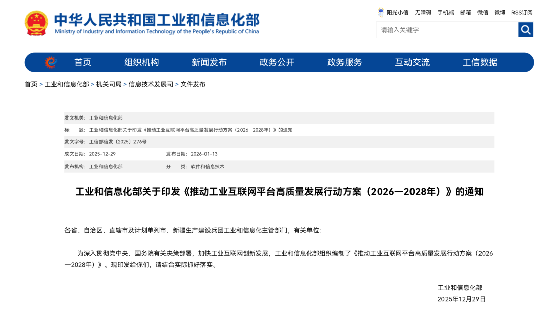 1月13日,工業和信息化部印發《推動工業互聯網平臺高質量發展行動方案(2026—2028年)》,為未來三年工業互聯網的發展錨定了方向。方案明確提出實施工業互聯網與人工智能融合賦能行動,支持平臺企業加快培育工業場景智能體,探索“平臺+場景智能體”融合架構。這為產業發展描繪了清晰的藍圖:到2028年,具有影響力的工業互聯網平臺將超過450家,工業設備連接數突破1.2億臺(套),平臺普及率達到55%以上。